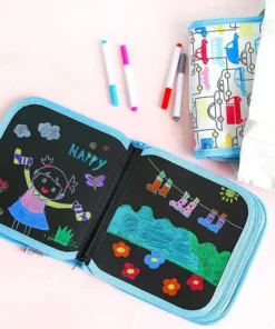 Draagbaar uitwisbaar krabbelblok (inclusief 12 pennen)
