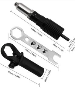 - PAKKET OMVAT: 1* Klinknagelpistooladapterset met 4 stuks (blindklinkpistool *1 +handvat *1+sleutel*1+klinknagelkop*4