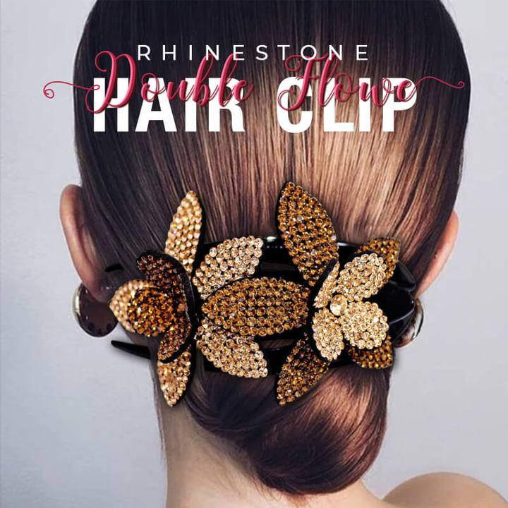 Haarclip met dubbele bloem en strass